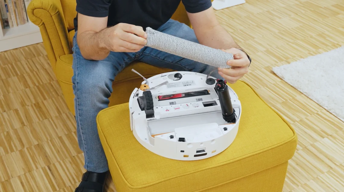 Hier liegt der eigentliche Schwerpunkt des Curv 2 Flow – und hier zeigt das Gerät seine Stärken am deutlichsten. Die Wischwalze misst 27 Zentimeter in der Breite, dreht mit 220 Umdrehungen pro Minute und wird laut Hersteller mit 15 Newton auf den Boden gepresst. Das entspricht mehr als dem Doppelten des Anpressdrucks klassischer Wischpad-Roboter. Roborock hat beim Wischsystem offensichtlich gezielt investiert – und das zahlt sich aus.