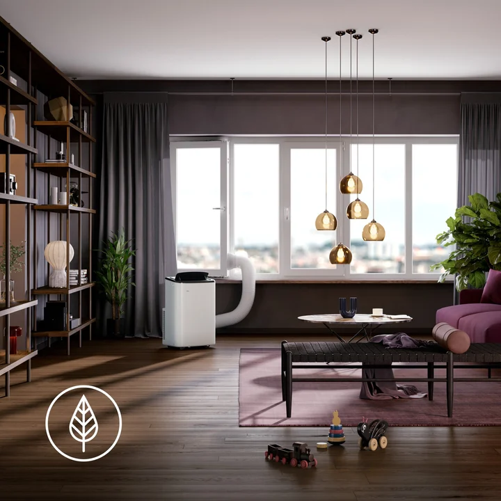 Einteilige mobile Klimaanlage · Kühlung · Entfeuchter · Ventilator · 9000 BTU/h · 1,2 l/h · 64 dB · R290