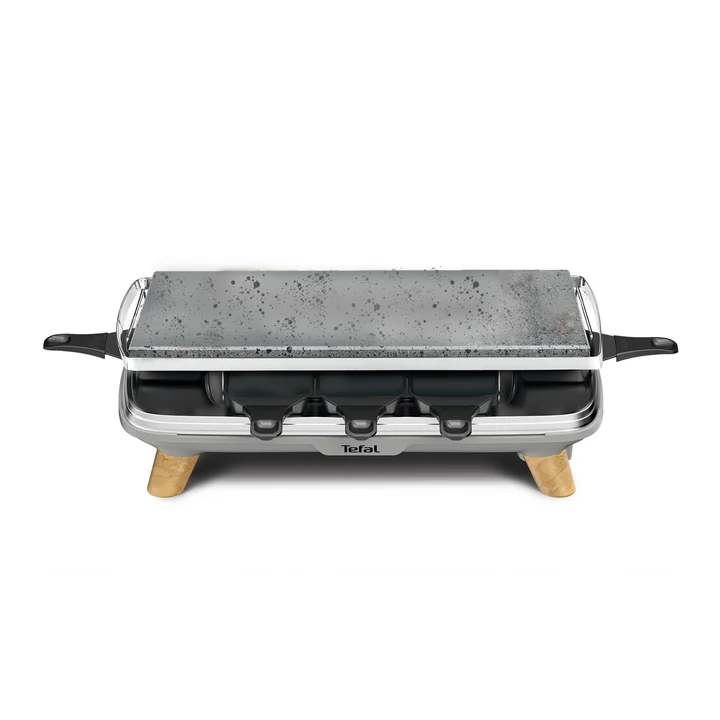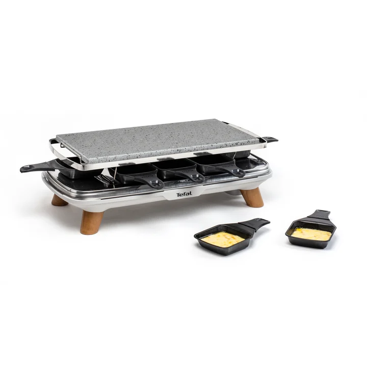 Pierrade Gourmet Raclette, Steinrake, 2-in-1, für den Innenbereich, 1350 W, Naturstein, 8 Maxi-Tiefschalen, leicht zu reinigen, Grau, Füße in