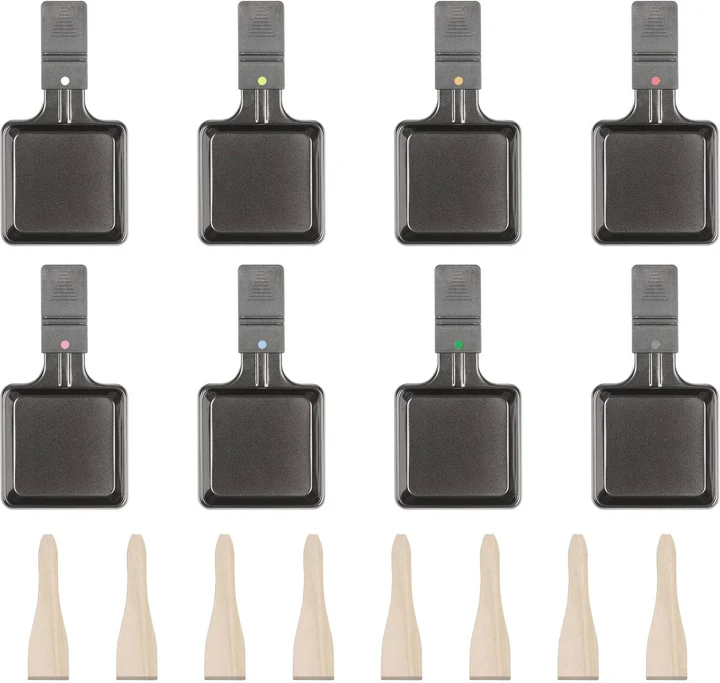 Raclette mit heißem Stein & Wendegussplatte | Raclette Grill mit Naturgrillstein | Raclette 8 Personen | inkl. 8 Pfännchen + Spartel | Raklettgerät