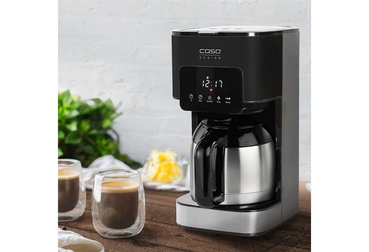 Die Caso Coffee Taste and Style Kaffeemaschine mit Thermoskanne punktet mit einem durchdachten Bedienfeld und einer Timerfunktion. Dank der Thermoskanne kannst du den ganzen Tag heißen Kaffee genießen.Vorteile