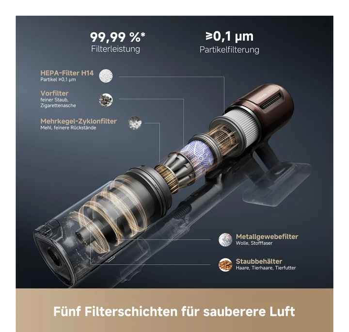 Der Dreame V30 beeindruckt als Premium-Stabstaubsauger mit ausgezeichneter Saugleistung von 330 AW und innovativen Features wie der GapFree-Kantenreinigung und dem TangleCut-System. Seine Fähigkeit, die Saugkraft automatisch anzupassen, macht ihn besonders effizient auf verschiedenen Bodenbelägen. Die Wartungsfreundlichkeit durch den wechselbaren Akku ist ein weiteres Plus. Allerdings ist er mit über 3,5 kg relativ schwer und kann nicht frei stehen, was die Handhabung etwas beeinträchtigt. Ideal für Haushalte, die auf Leistung und innovative Reinigungsfunktionen setzen, aber das Gewicht und den Preis in Kauf nehmen.Vorteile