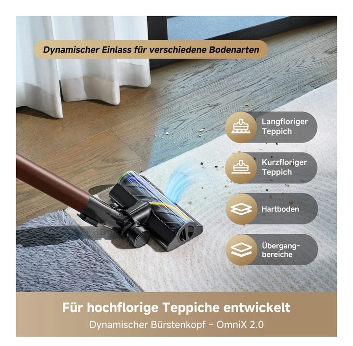 Dreame V20 Pro-A Kabelloser Staubsauger, Kantenreinigung 0 mm, ohne Verheddern, für Hartböden und Teppiche, 24.000PA / 210 AW, 90 Min. maximale Laufzeit,