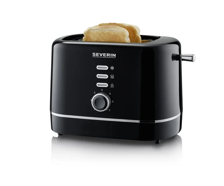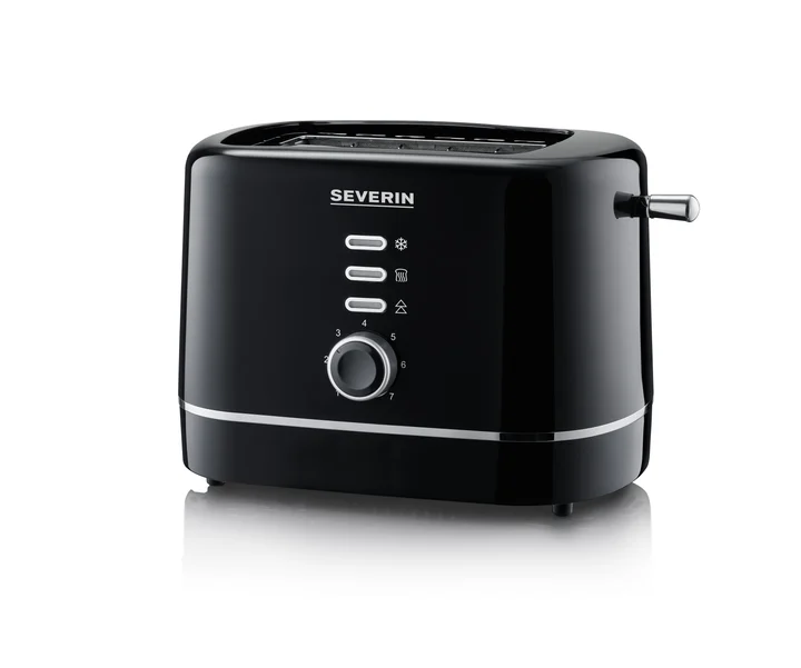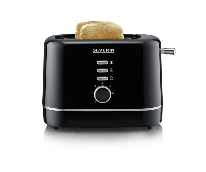 Severin Automatik-Toaster, kleiner Toaster für 2 Scheiben Brot, hochwertig, 7 Stufen, zum Toasten, Auftauen und Erwärmen, 850 W, schwarz, AT 4321