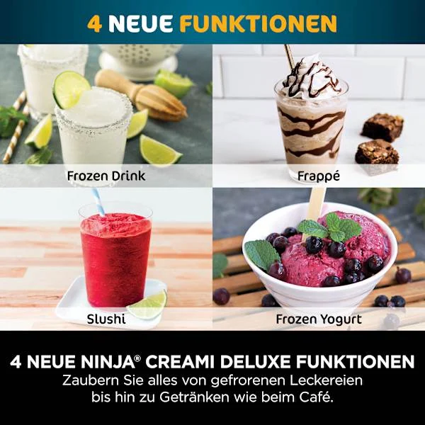 CREAMi Deluxe Eis-und Eisgetränkmaschine mit 2 Bechern, 10 Funktionen, macht Eiscreme, Gelato, Sorbet, Frozen Yoghurt, Milchshakes, Slushi & mehr,