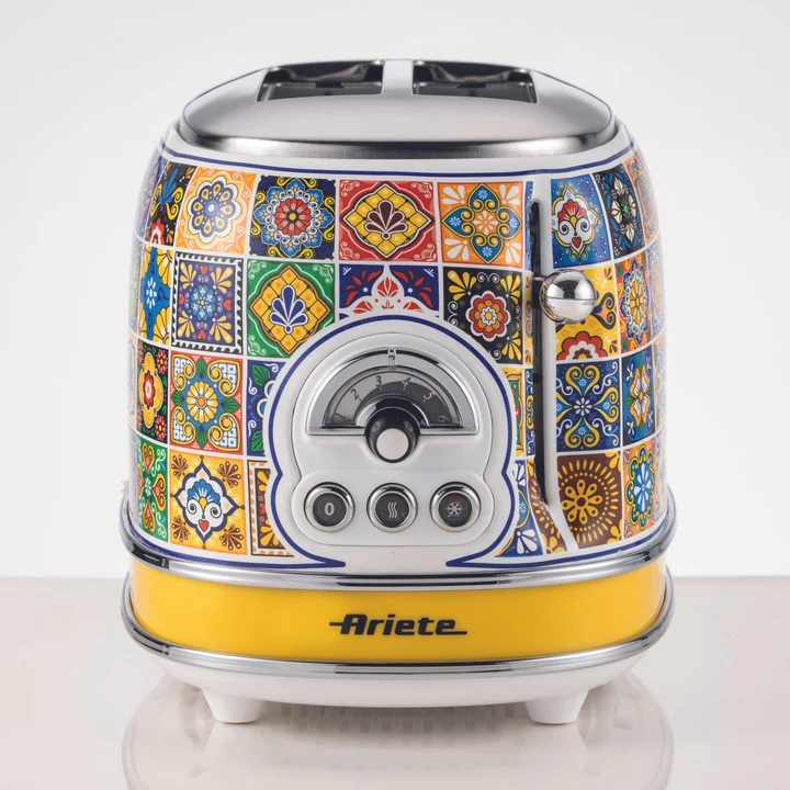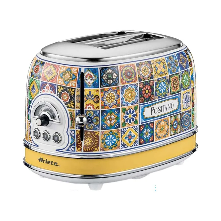 Toaster 155 Positano, Mediterranes Design, 2 Breite Schlitze, 6 Bräunungsstufen mit Automatischem Auswurf, Krümelfach, Toast-, Aufwärm- und