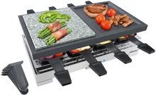 Cloer 6435 Raclette mit Naturstein, 1200 W, 8 antihaftbeschichtete Raclettepfännchen, Geteilte Platte
