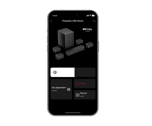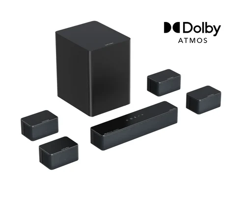 Poseidon D80 Boom Soundbar 7.1 Surround Sound System für TV mit Dolby Atmos (HDMI, Bluetooth, 500 W, 4 kabelgebundene Surround-Lautsprecher, 6.5“