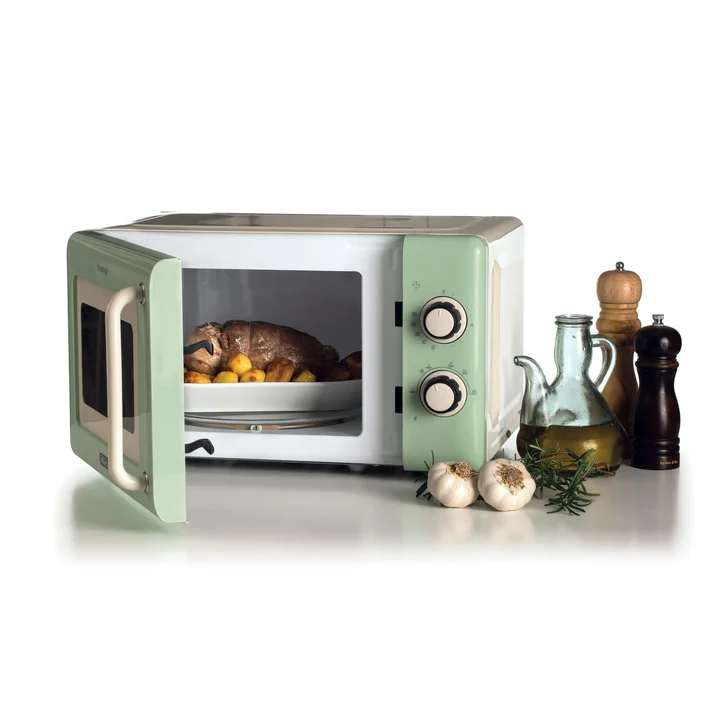 3960 Mikrowelle Vintage, 800 W, Fassungsvermögen 20 l, 3 Funktionen, 6 Kochstufen, Timer, Grün