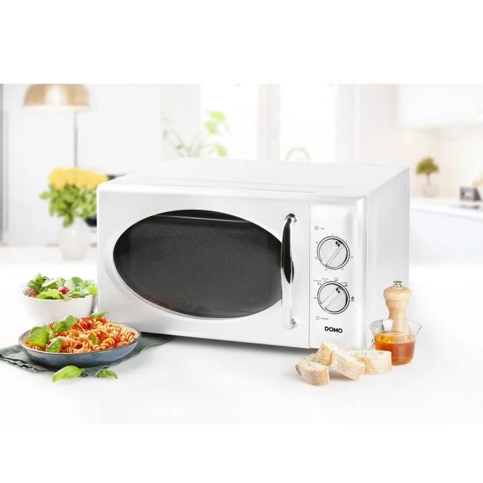 DO3125 Freistehend Retro Mikrowelle - Timer einstellbar bis zu 30 Minuten - Auftaufunktion - Mit Endsignal - 6 Leistungsstufen - 25L - 900W - Weiß
