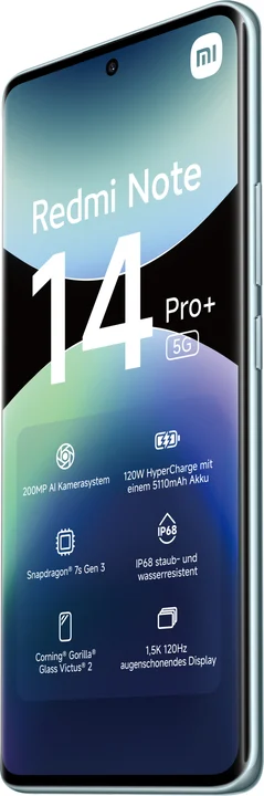 Xiaomi Redmi Note 14 Pro+ - 5G Smartphone - Dual-SIM - RAM 8 GB / Interner Speicher 256 GB - OLED-Display - 6.67" - 2712 x 1220 Pixel (120 Hz)