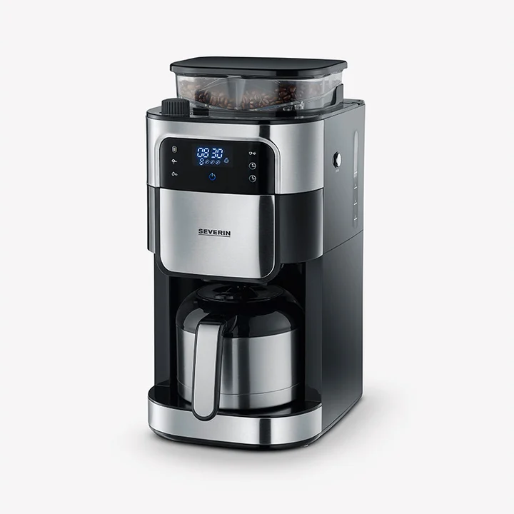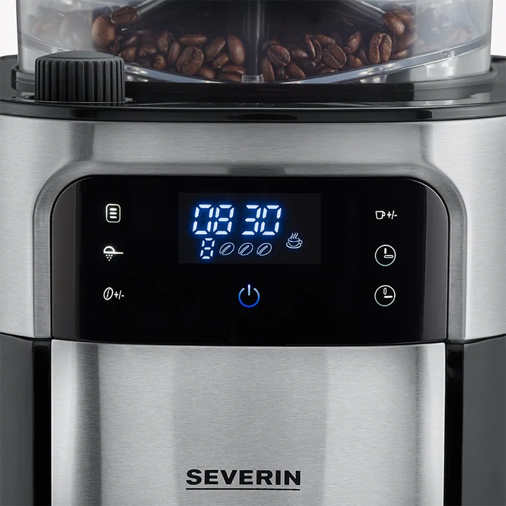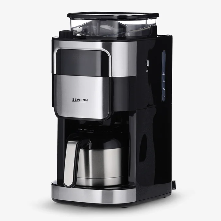 Severin Filterkaffeemaschine mit Edelstahl-Mahlwerk & Thermokanne, einstellbarer Mahlgrad, 1000 W, bis 8 Tassen (1 L), Schwarz, KA 4814