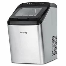 H.Koenig - KB14 Eiswürfelmaschine, 12kg in 24 Stunden, Eiswürfel in 6min, 2 Eiswürfelgrößen, 120 W Silber leise, Eiswürfelbereiter Edelstahl, 2.1 L,